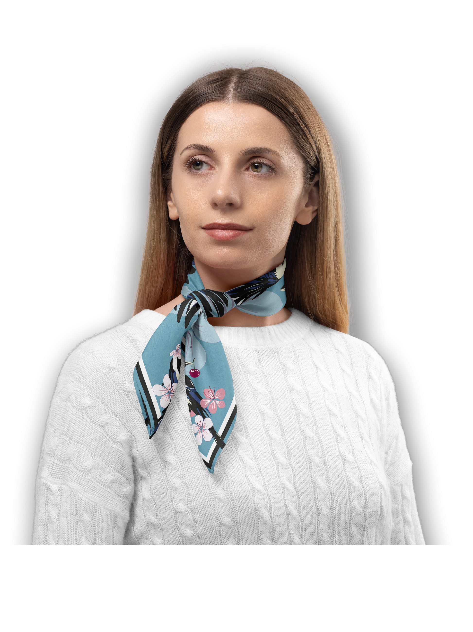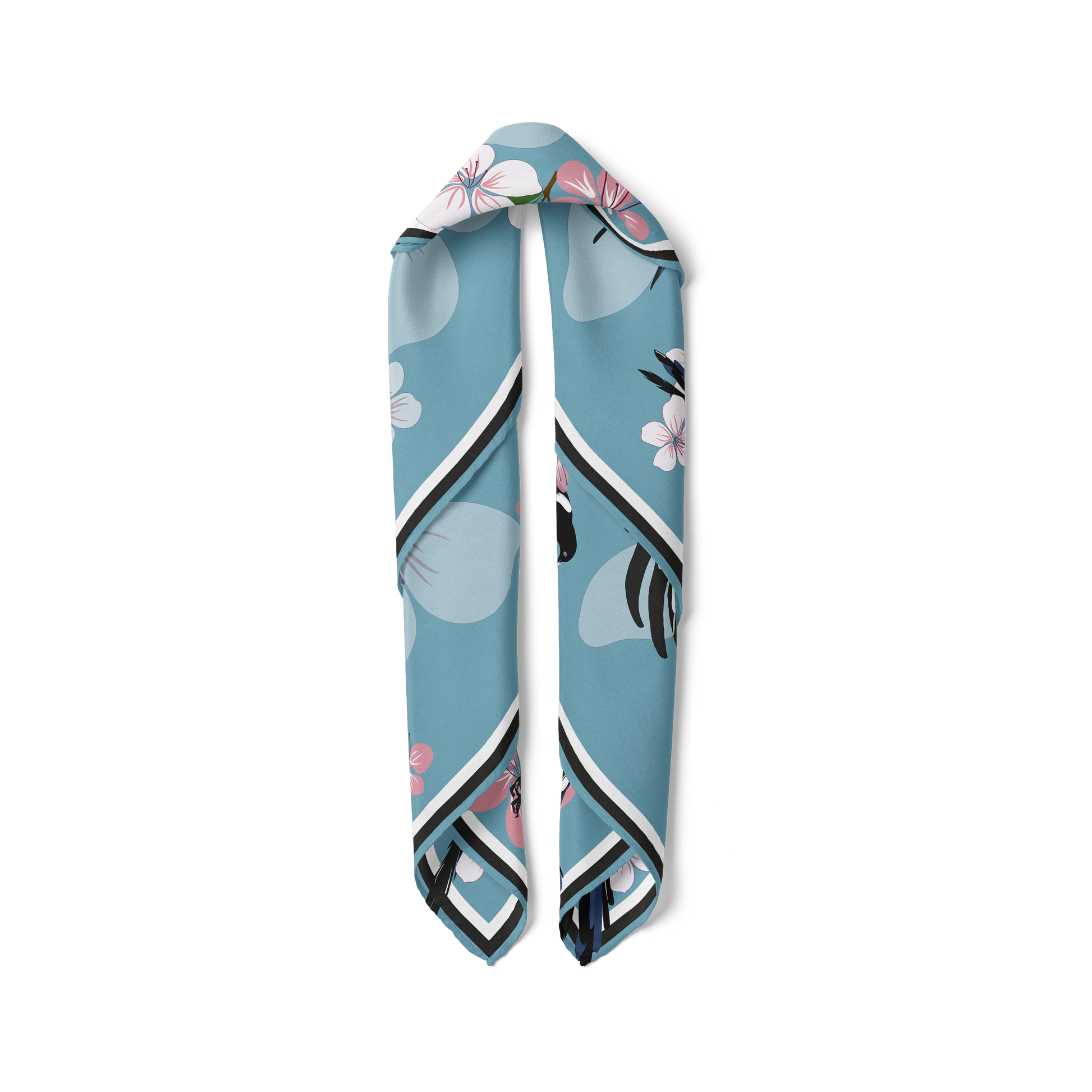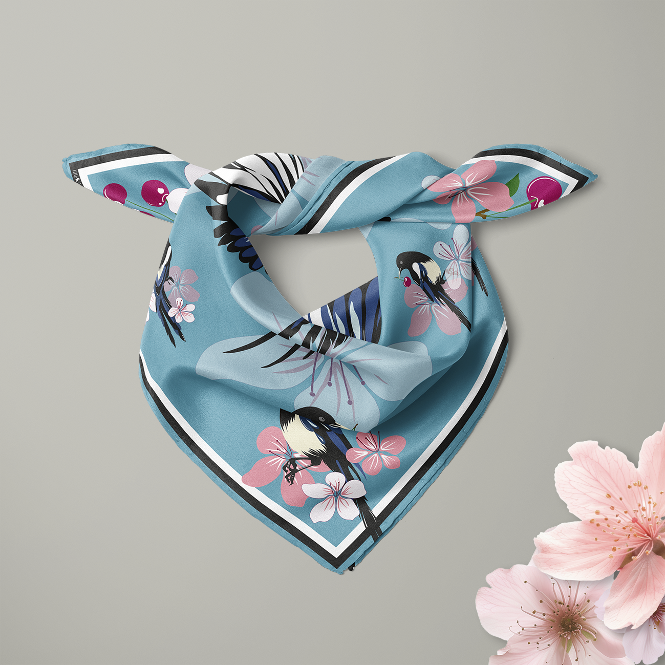 Designet på dette tørklæde fanger denne dualitet: harmonien mellem modsætninger og fascinationen af det ekstraordinære. Ligesom skjærene, der lærer os at se verden fra forskellige perspektiver, inviterer dette tørklæde dig til at bære et kunstværk, der ikke kun fortæller en historie, men også opfordrer dig til at opdage undren i det hverdagslige, det skinnende og det unikke.