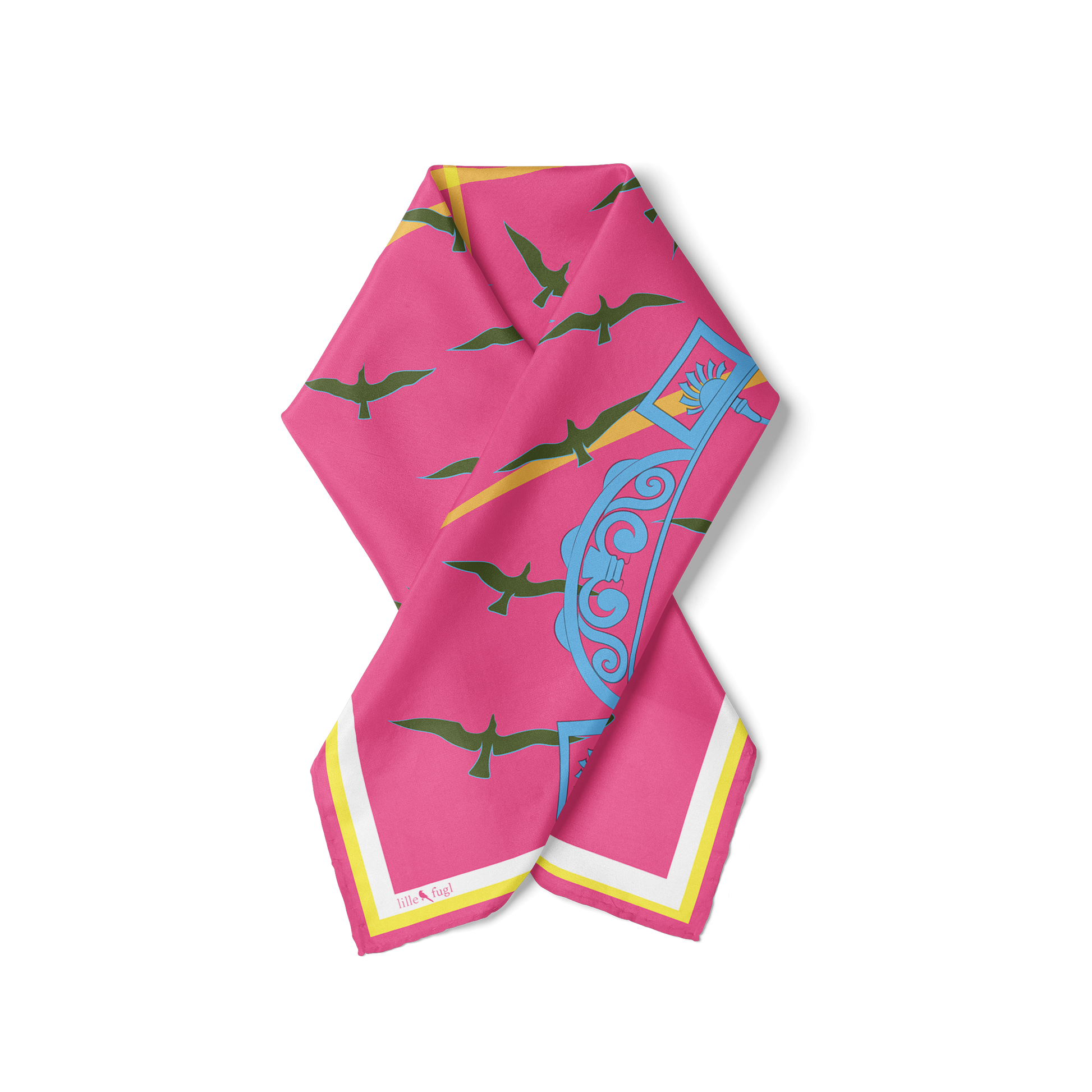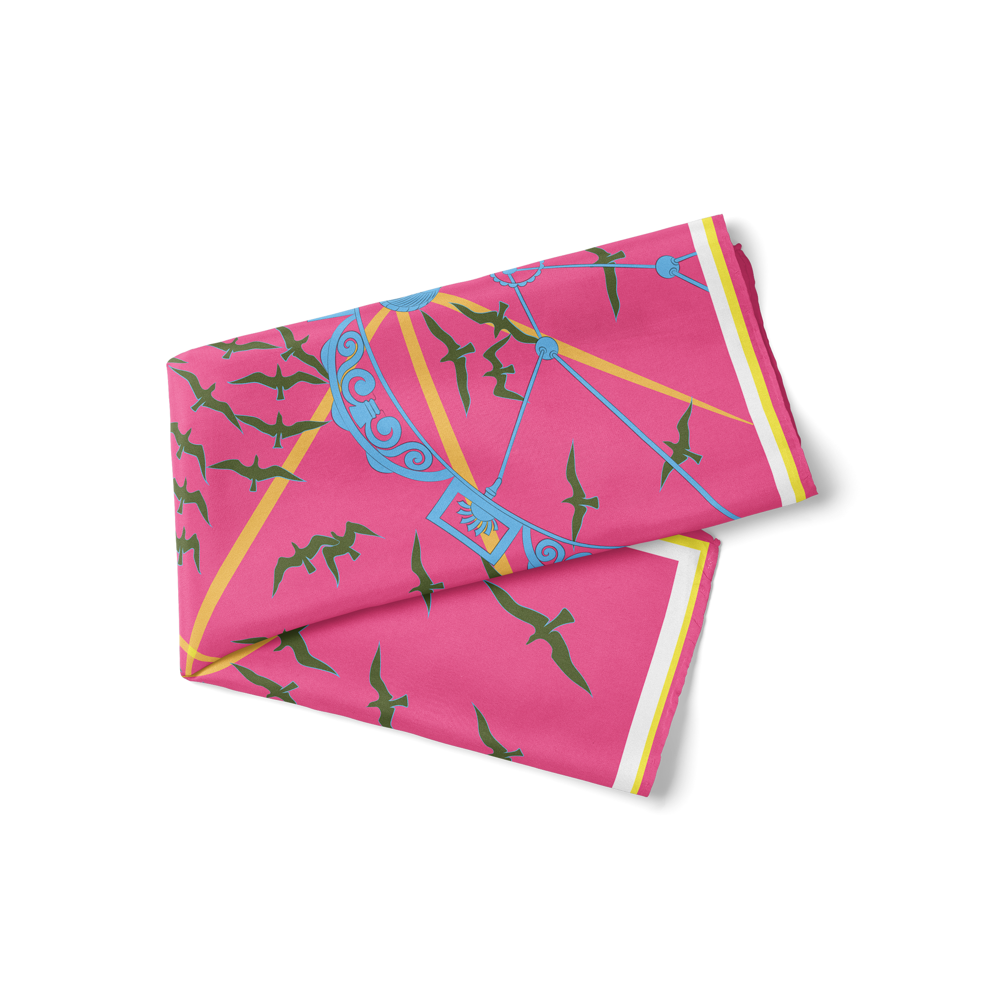 Dette tørklæde fanger det øjeblik af undren, den pause, hvor kunst og historie afslører sig for dem, der ved at kigge. Det er et stykke, der ikke bare smykker, men også inviterer til nysgerrighed, rejse og muligheden for at opdage det personligt.